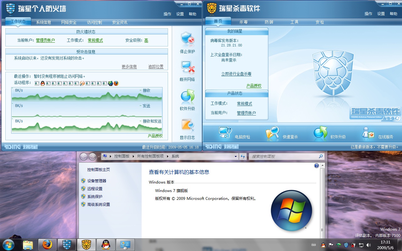 [原创] 瑞星09杀毒软件和防火墙在windows7RC上运行无问题,顶