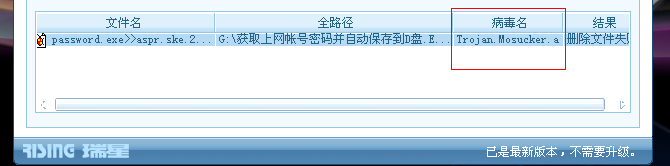 今天我想重装系统,所以我就在安全模式下先把新买来的 电脑公司特别版 V9.3操作系统盘运行一下用瑞星全功能安全软件查杀一下 ,结果杀出了病毒:Trojan.Mosucker.a。这到底是什么病毒,我在网上也没有找到有关这个病毒的相关信息,应该怎样清除,我的这张安装盘还能用吗?