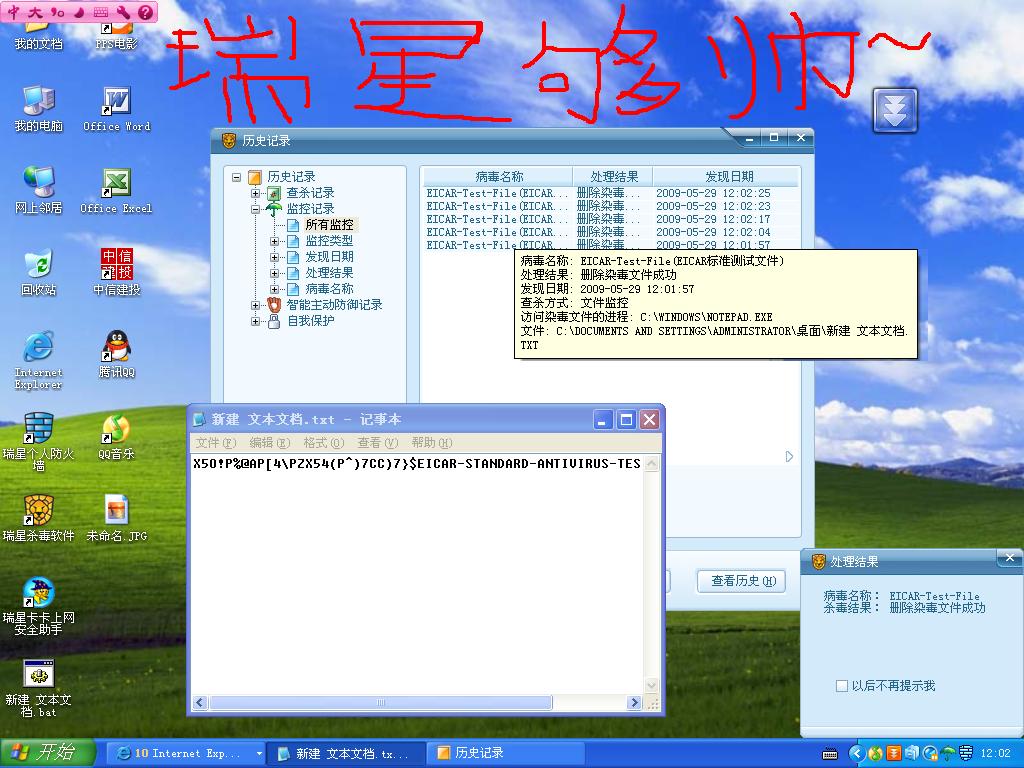 在这我要声明下,我不是在抬高NOD32贬低瑞星,因为我也是瑞星的正版用户也是希望瑞星的防毒杀毒能力能超过国外的杀毒软件,