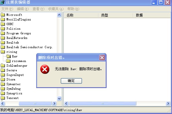 有按照有心人的提示,按步骤打开注册表编辑器,然后删除Rav。