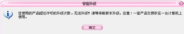 你这种情况一般是安装了多台电脑或者短时间内重复安装重复升级引起的,注意瑞星只能安装在一台计算机的一个系统中,然后等待下一次升级.