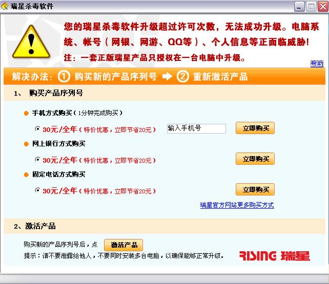 是不是别人知道你的产品序列号,或者你将同一个序列号激活了两台以上的计算机?