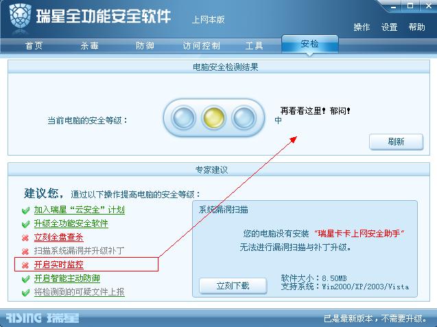 上网本版本没有邮件监控,所以安检会这样提示,此问题已反馈瑞星。