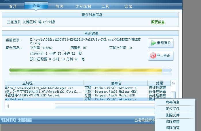 病毒库升级到最新,补丁漏动都是最新更新