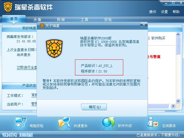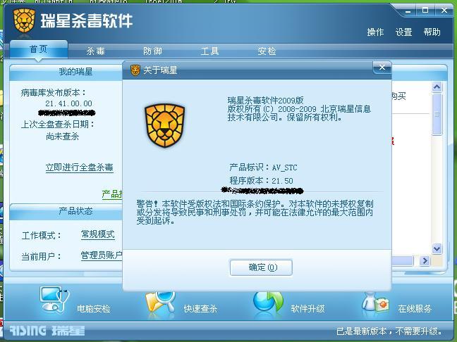 界面显示版本和实际版本不符,难道瑞星只升级版本却不升级病毒库?