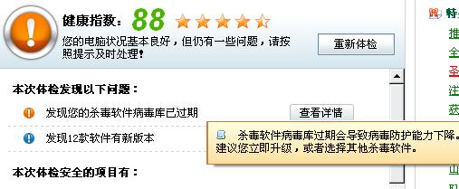 回复:360正常电脑体检报出我的瑞星病毒库过期?