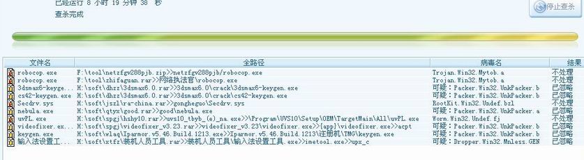 服务器装的是2000系统的,昨晚用瑞星全盘杀毒(病毒库是最新的),今天早上一看,查出了好几个病毒,但是再仔细看看,却发现是什么诸如网络执法官、3Dmax的key生成器,会声会影以及别的一些压缩包文件。这些东西自己感觉不应该是病毒啊。怎么瑞星都给判死刑了?