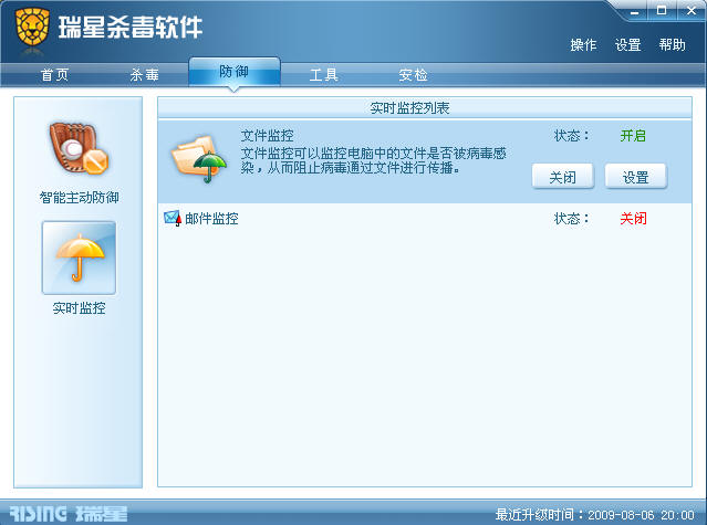 我的09版瑞星为什么开机后伞的颜色是黄色的,“开启所有监控”后正常,启动项正常