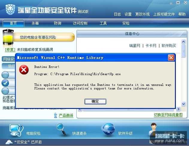为什么瑞星修复漏洞后我计算机上出现的 Microsoft Ⅷ 对话框上什么都没有只有一个红色的“