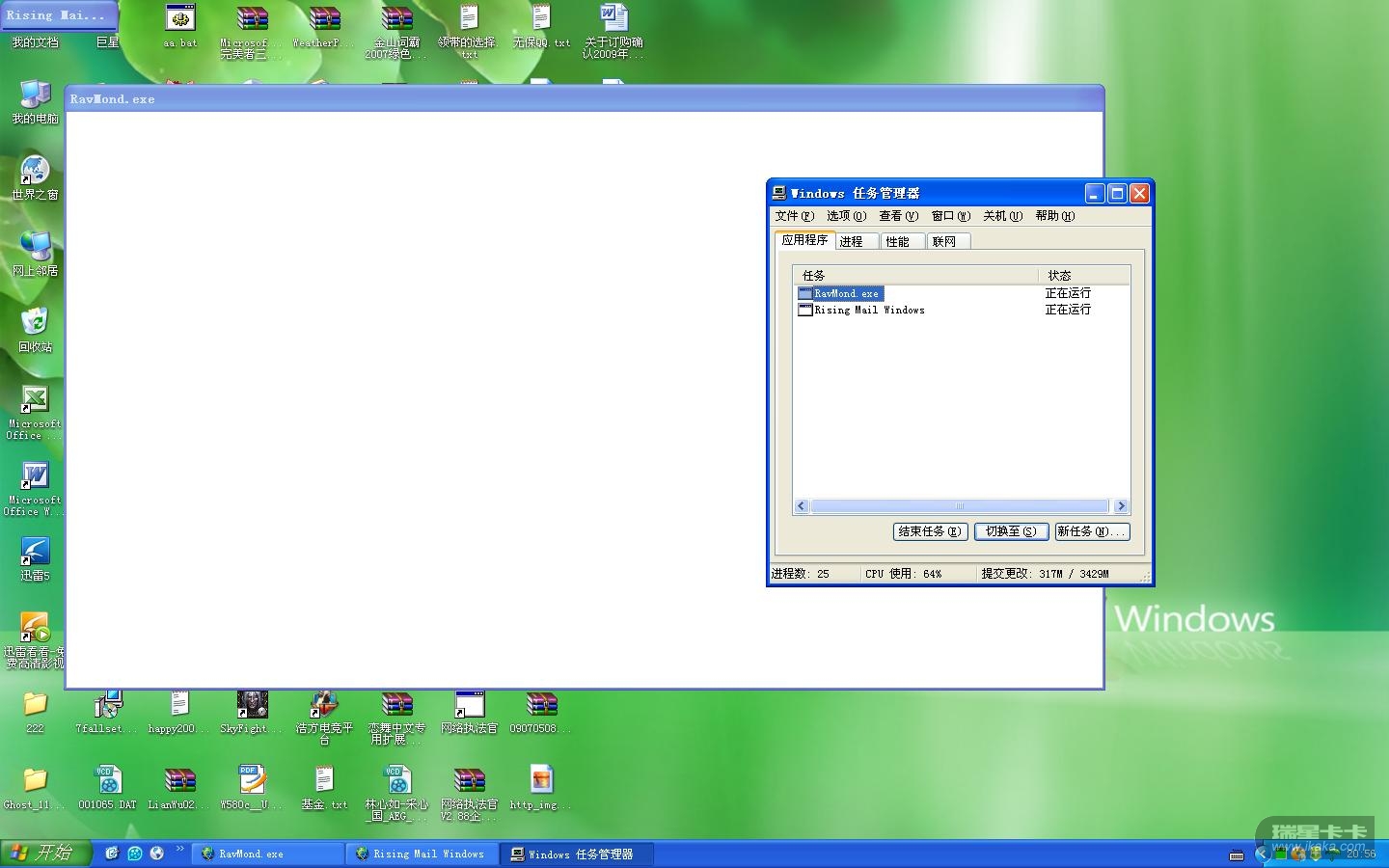 我好好的在看电影,突然就这样了,关也关不掉,注销了下,还是有两个关不了,应该是瑞星的问题吧