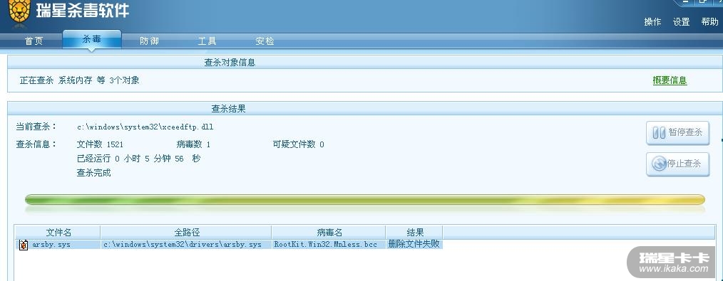 回复:瑞星扫描出来的病毒竟杀不了?如图