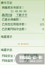 自从国庆开始放假,我的瑞星就一直没升级,每天启动瑞星的软件升级都告诉我已经是最新版本了,不需要升级。不知道是不是正常,版本号是:21.49.60.00。 如果版本不对,应该怎么升级啊,十分着急,在线等,谢谢。