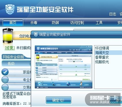 重装后也还是只有3个皮肤,难道瑞星杀毒软件2010只有3套?全功能2010才有4套?