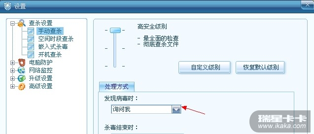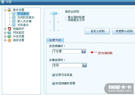 设置里搞的是“询问”, 发现病毒时也有提示处理窗口,我点的就是清除或 删除,然后提示处理结果是 不处理。 而且是所有的病毒都这样。