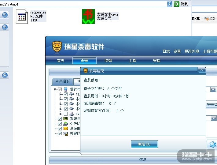 怎么楼主的瑞星只杀到2个文件?