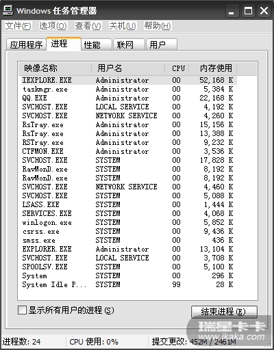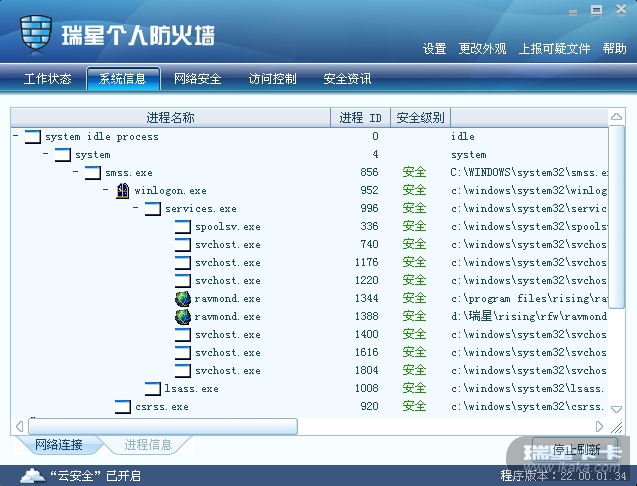 我还想问下我的瑞星跟新到最新的版本了 我的系统进程原来是