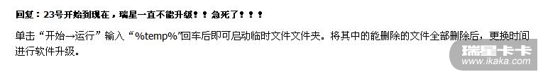 我的瑞星从23日开始就无法升级了,升级到一半就跳出下面这个框来,到今天还是这样