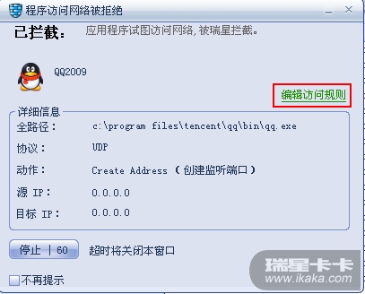你单击编辑访问规则,2008版,2009版,都会在图三中有此程序,而且你只要选择放行即可,2010不会这样,没有任何提示,你必须单击增加找到这个程序后,在放行的。