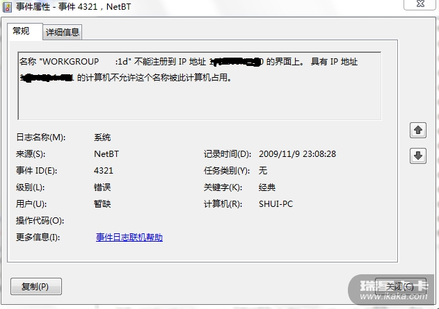 应该不是你所说的原因。我发现只有把防火墙的级别设为高级后,才有此错误之日志!因而可以断定:瑞星的哪里出问题了!!