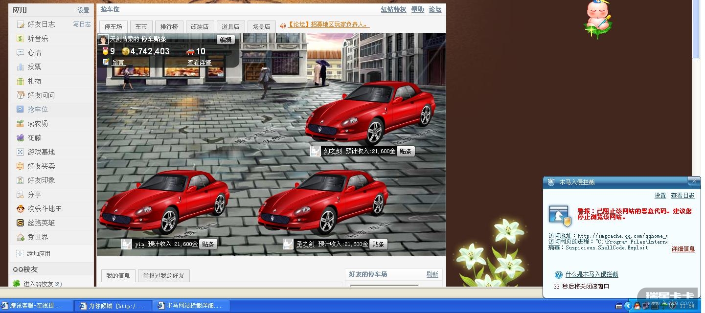 [求助] QQ空间抢车位木马提示,如何解决?