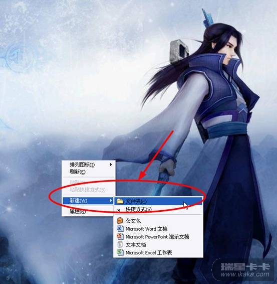 、鼠标右键单击桌面,然后点新建