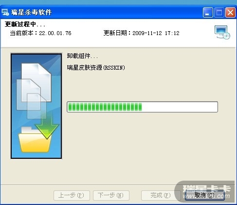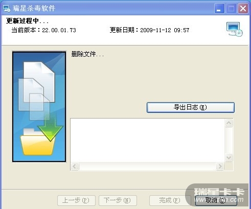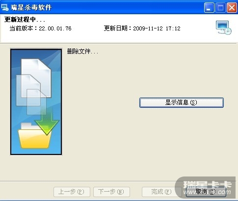 我也是同样的情况啊,卡在删除文件那里,点取消后瑞星杀毒就被删了