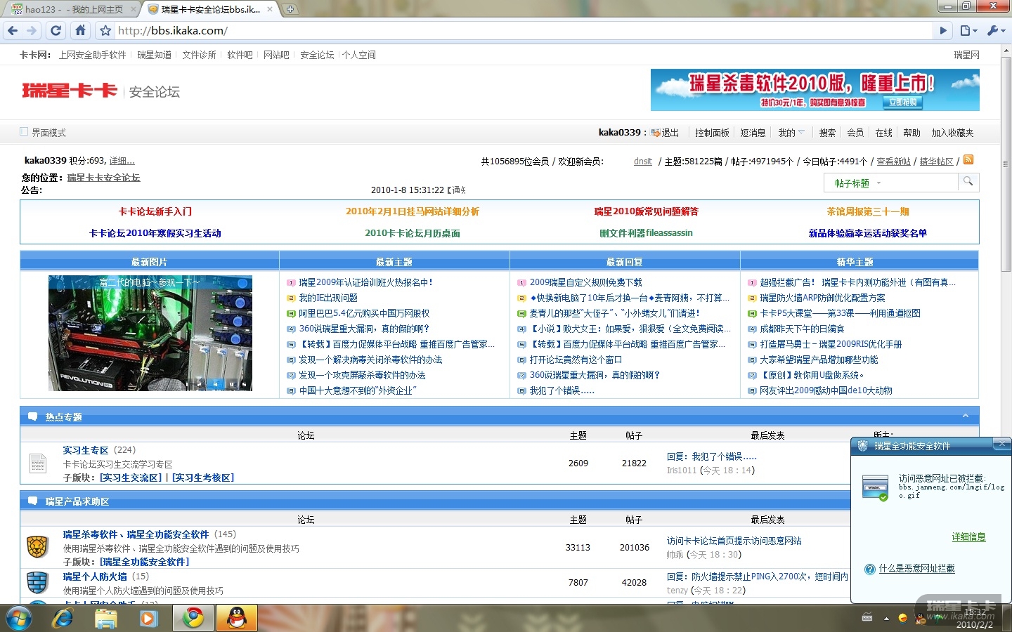 [原创] 访问卡卡论坛竟然被瑞星误报为访问恶意网站,不知是误报还是论坛被攻击了?