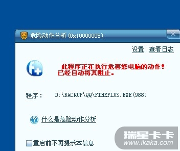 启动QQ时,瑞星杀毒提示“危险动作分析”,请问各位兄弟姐妹,QQ软件是否有问题?