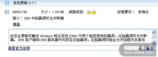 卡卡有时会有这样的BUG,你可以先看看是否安装了这个补丁,如果安装了就不要管卡卡的提示了。如果没有安装你去微软官方网站下载这个补丁自己安装。