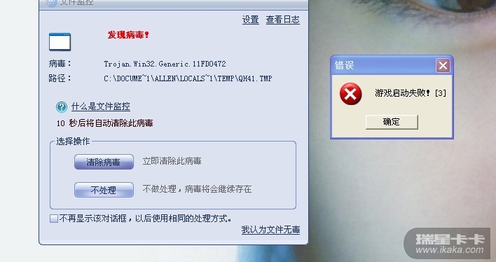 你可以把你信任的文件,添加到瑞星木马行为防御的白名单中尝试一下。