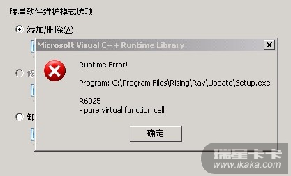 进安全模式,手动删除瑞星安装目录下的文件,开始运行输入regedit,将HKEY_LOCAL_MACHINE\SOFTWARE\rising\Ris(或rav)键值删除,下载新的安装包重新安装再升级。
