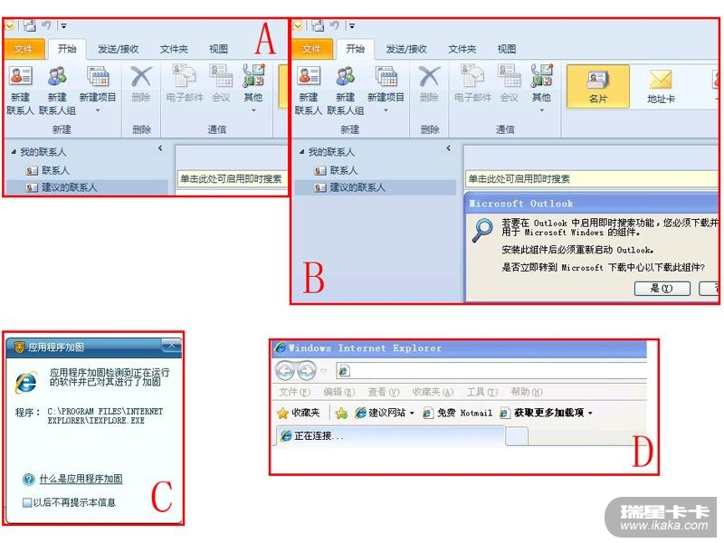 从OUTLOOK中点击进入微软下载即时搜索组件时遭到瑞星拦截(打开的IE地址栏为空,并且永远也不会连接上任何网址),关掉瑞星防护后正常,请问你瑞星的加固都加了些什么东西,固的连微软的网址都去不了,你干脆搞个断网来个单机那更安全了!然后禁止所以程序/脚本运行,那最安全了!