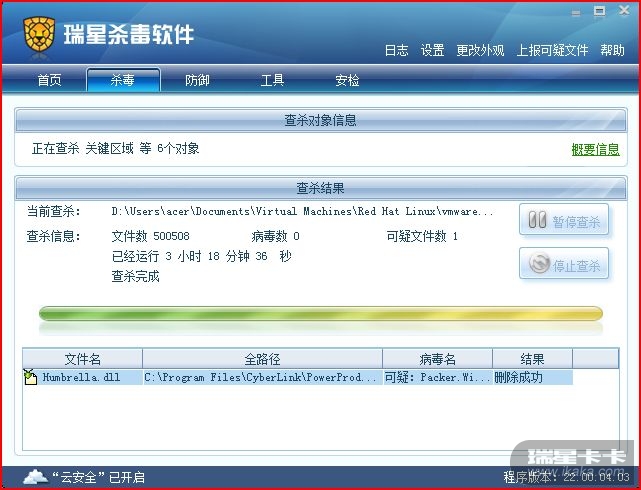 刚用瑞星查到的一个可疑文件,Humbrella.dll.......C:\ProgramFiles\CyberlLink\PowerProducer\......Packer.win32发现病毒,那个好像是讯连科技《DVD 威力制片》软件里的文件,能删除么?
