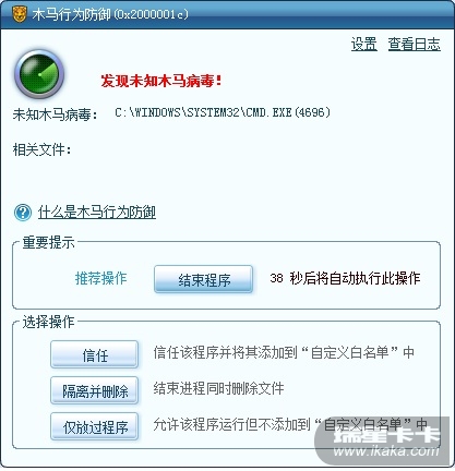 我在windows 7的DOS环境下用批处理RD /s /q temp 删除temp目录时提示出现未知木马。如下图所示: