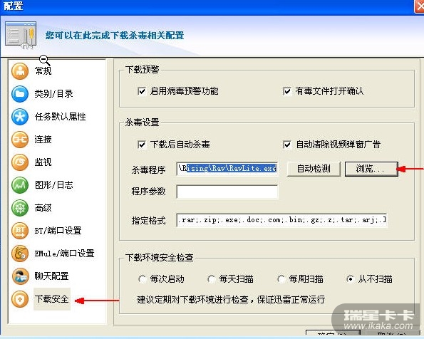楼主可以手动添加,在迅雷里面配置-下载安全,浏览,在瑞星的安装目录下找到RavLite.exe,关联一下就可以了