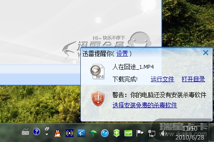 瑞星全功能2010版嵌入杀毒程序中何时能加入迅雷5