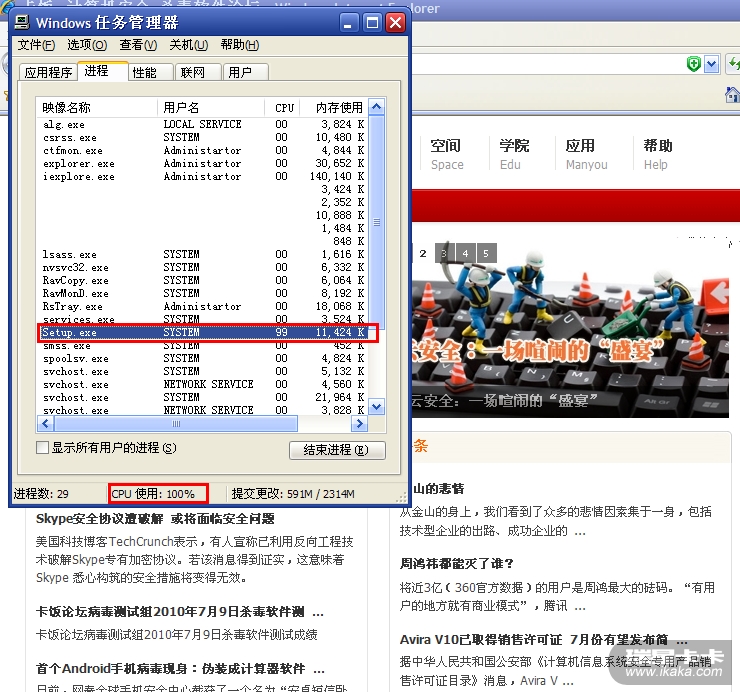注意红框部分,为瑞星升级时的Setup.exe程序