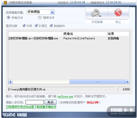 楼主您的杀毒软件貌似比免费在线查毒的要新呀!!