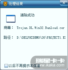 瑞星卡卡安全论坛个人产品讨论区瑞星杀毒软件瑞星杀毒软件2011 瑞星将DELPHI编译出的DEMO给误杀了 Trojan.DL.Win32.Banload.cer