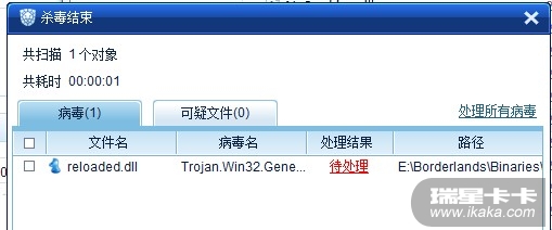 游戏无主之地中的文件被误杀,请工程师去除误报!