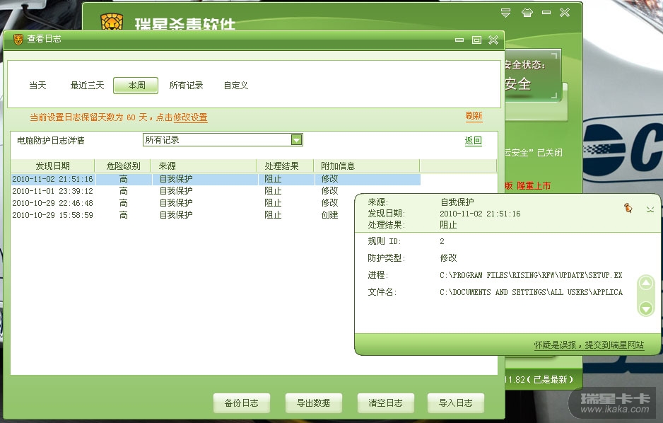 瑞星防火墙升级安装程序被瑞星杀毒软件“自我保护”功能阻止