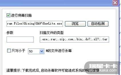 我下载程序和文件完,瑞星总是扫描个不停。需要我手动关了瑞星扫描。不知道 啥原因