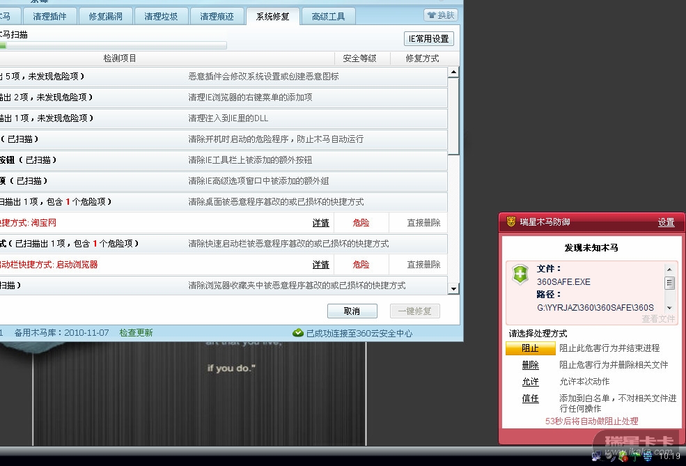 瑞星啊,你是怎么了?360能查出来,你为什么查不出来?你查不出来也就罢了,你为什么还阻止360清除?