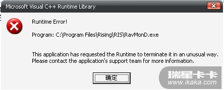 楼主出现runtime library的报错提示时是瑞星的哪个程序出现了问题?