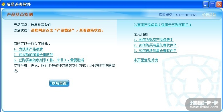 瑞星杀毒软件真垃圾,真是花钱找罪受,激活不了你们收个毛费啊,垃圾