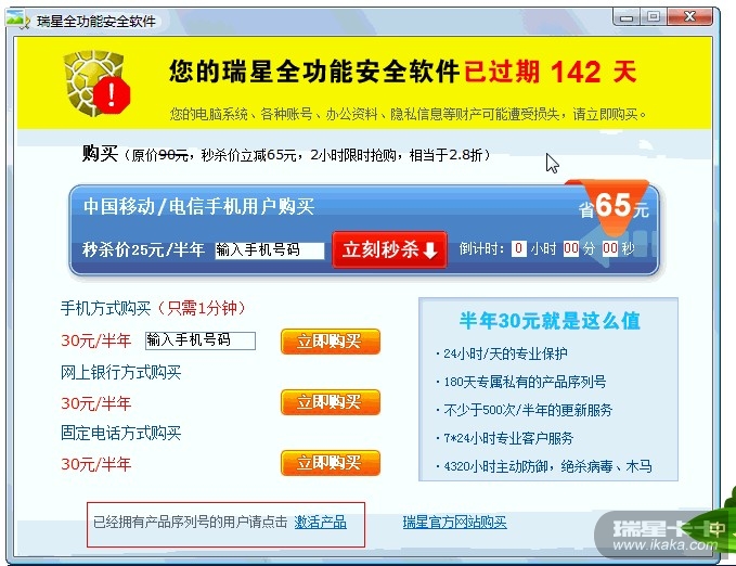 如果您确定产品并未过期,再次出现此问题时。可以点击产品激活重新输入您的产品信息。若如出现过期提示,点击图中红框部分的【激活产品】即可。