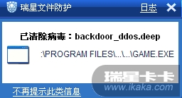 回复:安装天龙八部时瑞星提示“backdoor_ddos.deep”是病毒