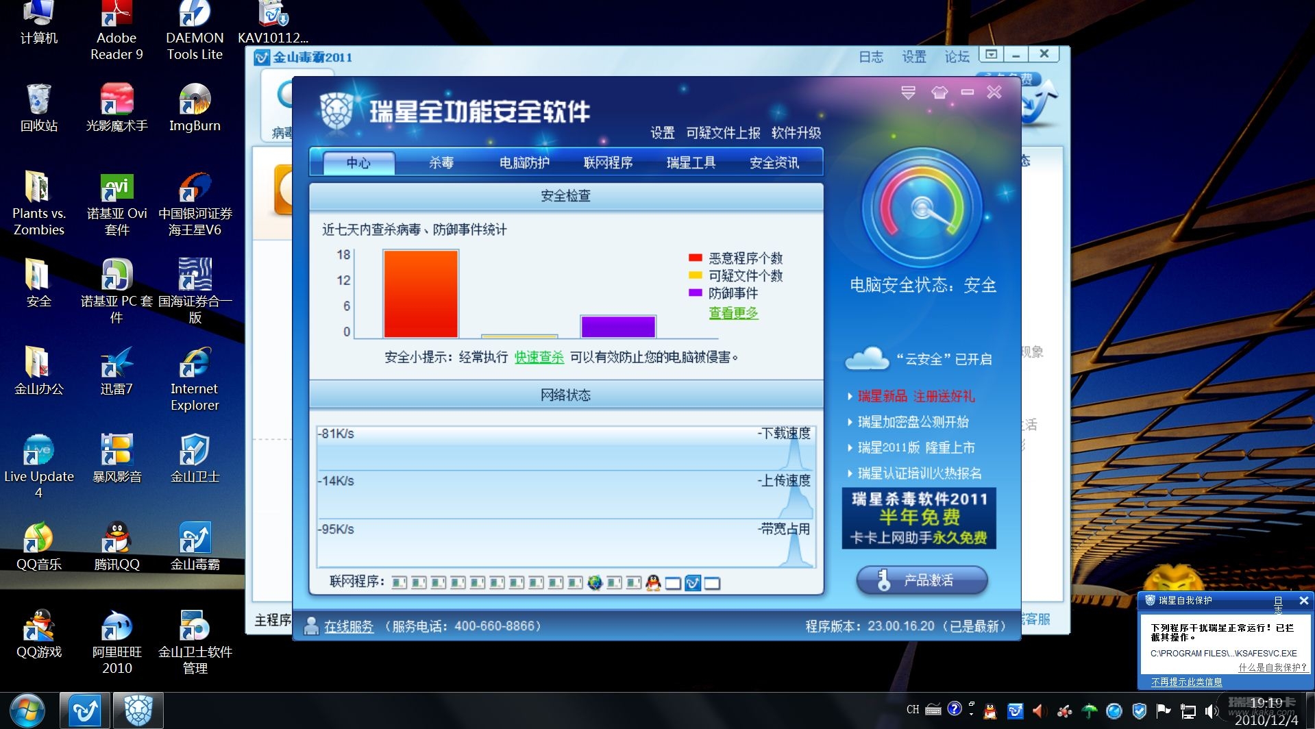 瑞星2011强在整体防御,而查杀率爆低,响应速度满。据说原因是因为云3.0仅仅建设好了硬件,软件系统还没弄好的缘故。