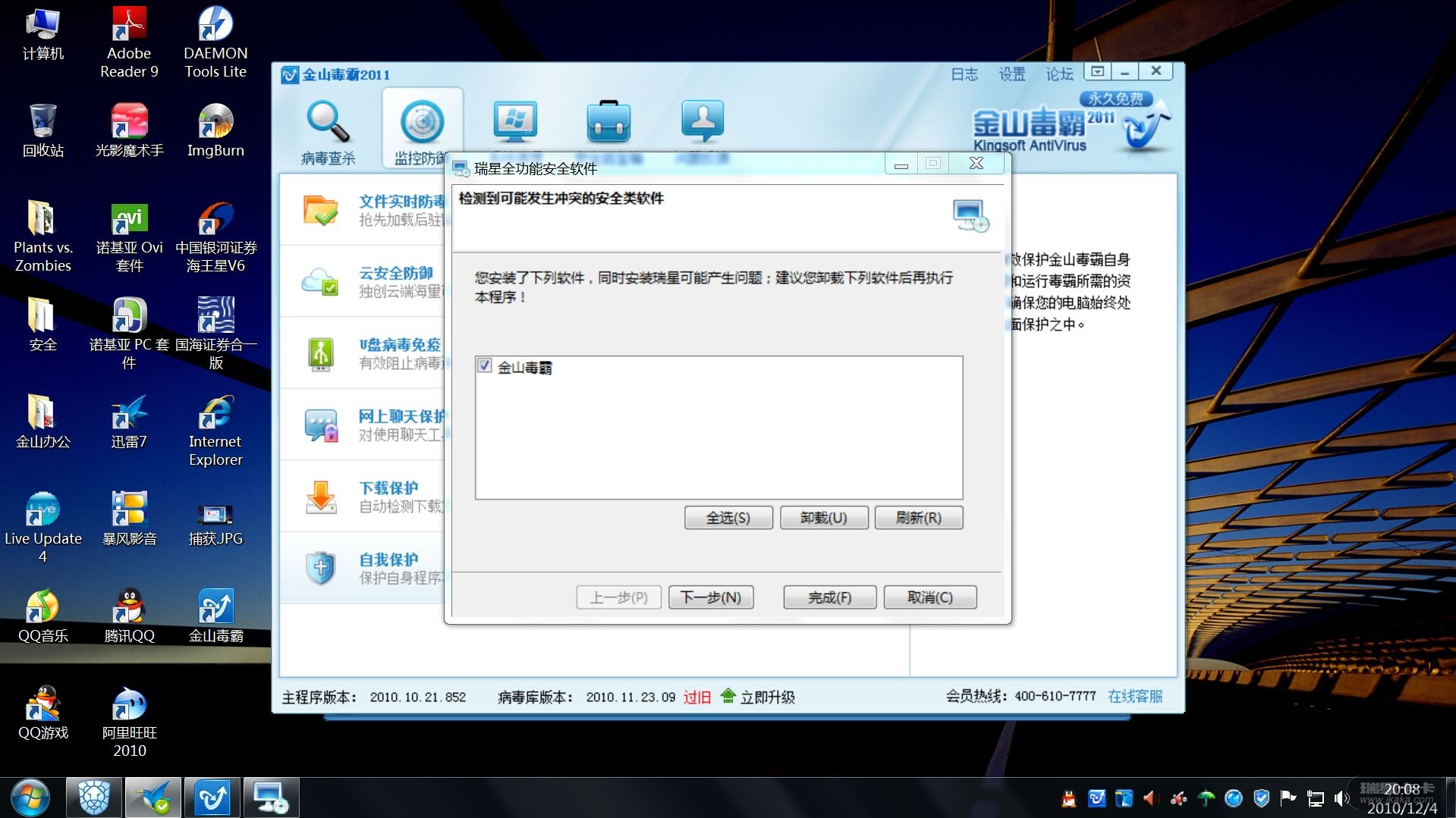 [求助] 瑞星与金山毒霸2011无法兼容。