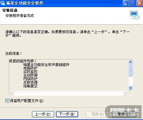 首先 先谢谢你的回复 你说的“不保留用户配置文件修复瑞星” 这个我要去哪里弄呀 找了半天 没发现瑞星有这个功能呀